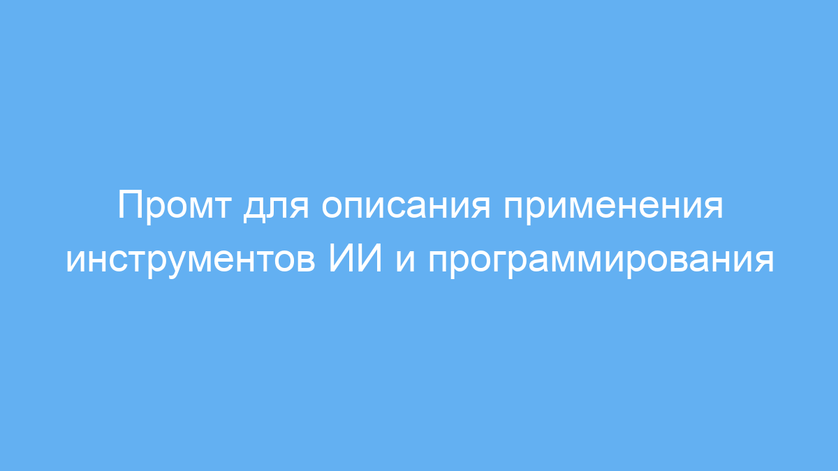 Этот промт позволяет комплексно описать и систематизировать знания по использованию искусственного интеллекта и программирования. Он помогает быстро получить представление о ключевых инструментах и их взаимодействии, что существенно сокращает время на анализ и подготовку материалов. Использование промта удобно при создании образовательных курсов, технических отчетов и презентаций.