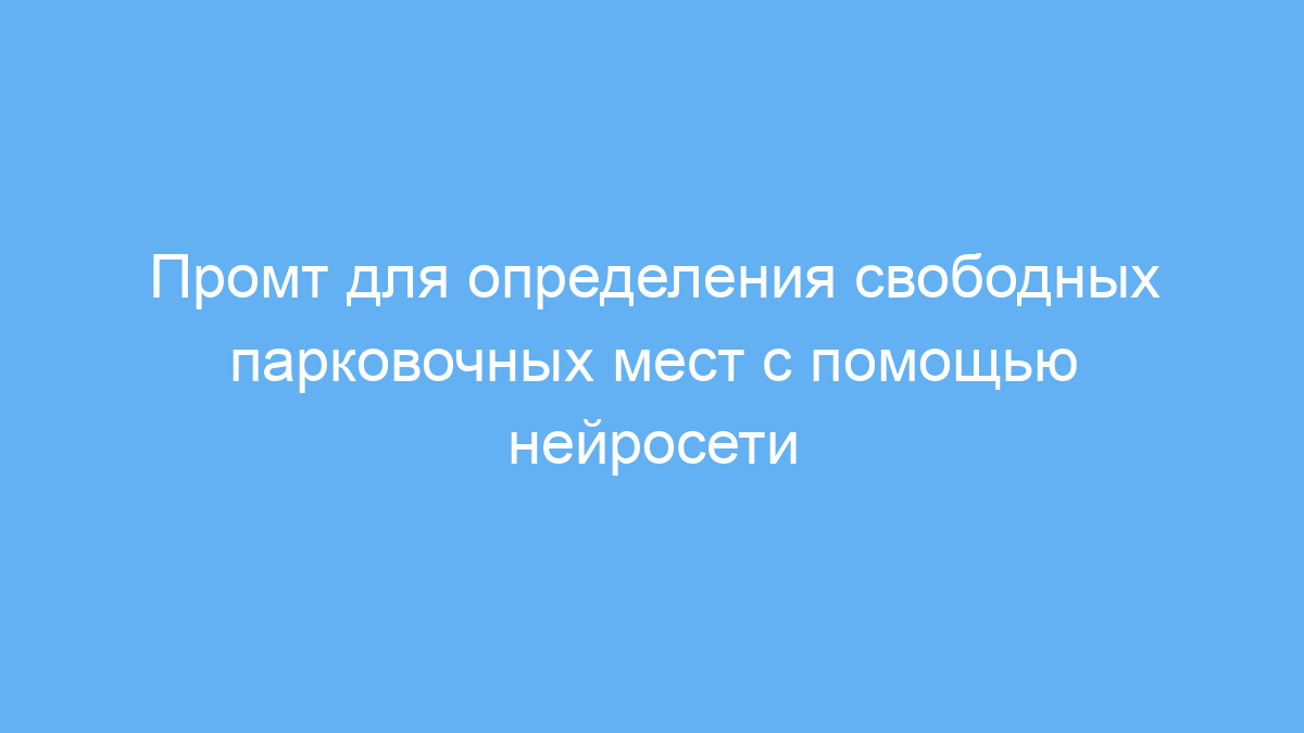 Проблема, которую решает промт – это снижение времени и ошибок при ручном контроле занятости парковок. Система автоматически «видит» свободные места, что облегчает управление парковкой и улучшает организацию пространства.