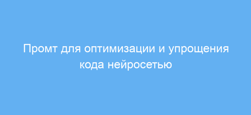 Промт работает так: вы предоставляете нейросети исходный код, а она анализирует его, выявляет и удаляет ненужные элементы, упрощает структуру и улучшает качество кода, при этом не изменяя его смысл. Важно, что изменения производятся только при полном понимании исходного материала, чтобы избежать ошибок.