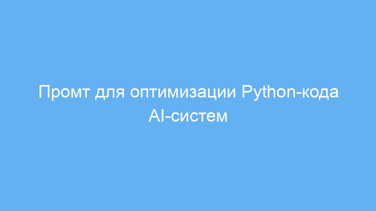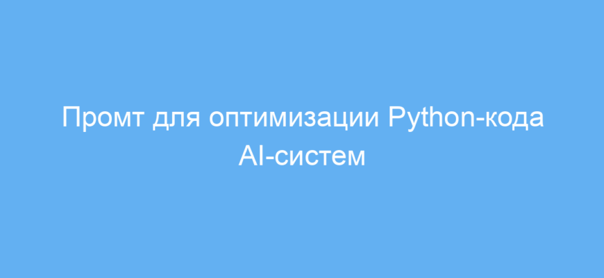 Рекомендуется использовать этот промт, когда нужно улучшить Python-скрипты, которые медленно работают или потребляют много ресурсов. Промт хорошо подходит для образовательных целей, чтобы понять принципы оптимизации кода.