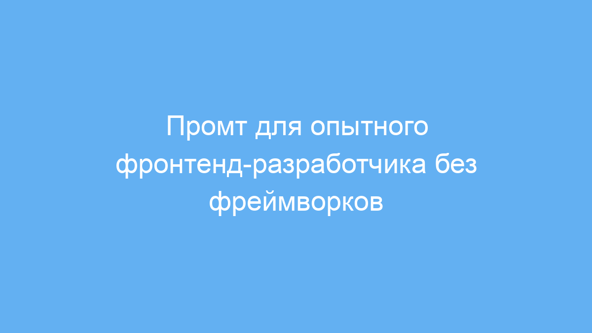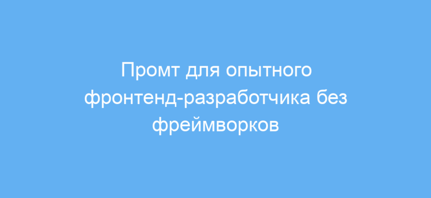 Используйте этот промт, чтобы получать исчерпывающие решения фронтенд-задач без отвлечения на сторонние библиотеки. Он подходит для уточнения терминов, написания кода и оптимизации дизайна.