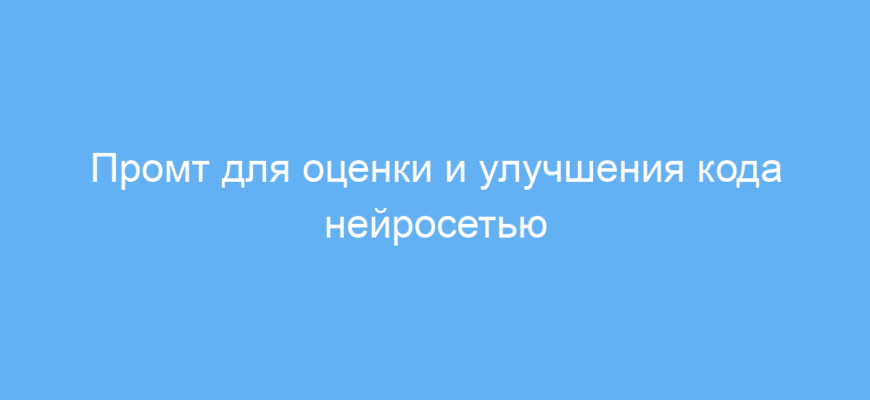 Используйте промт, передавая нейросети код, который хотите проверить. Она быстро даст оценку и рекомендации по улучшению. Помните, что точность оценки зависит от сложности и языка программирования — иногда анализ может быть поверхностным. Если хотите получить изменённый код без комментариев, дайте чёткую команду, например «верни весь код».