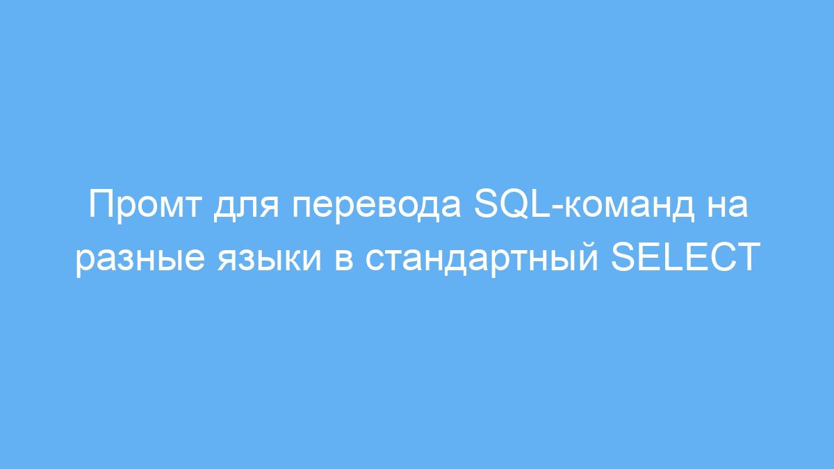 Этот промт экономит время и силы при работе с многоязычными SQL-запросами, позволяя быстро и корректно переводить текстовые команды в готовые SELECT-запросы. Это полезно и для обучения, и для разработки.