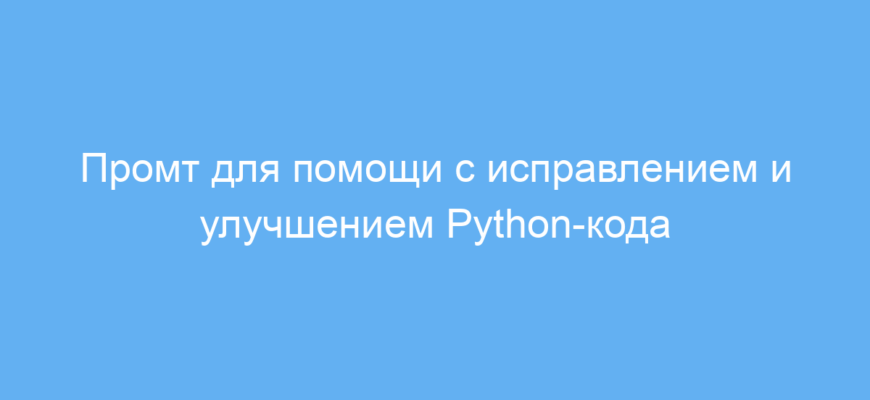 Использование этого промта экономит ваше время и силы при работе с кодом на Python. Он помогает быстро найти ошибки и добавить полезные функции без лишних разъяснений. Такой помощник идеален для разработчиков всех уровней, которые хотят максимальной конкретики и эффективности при работе с кодом.