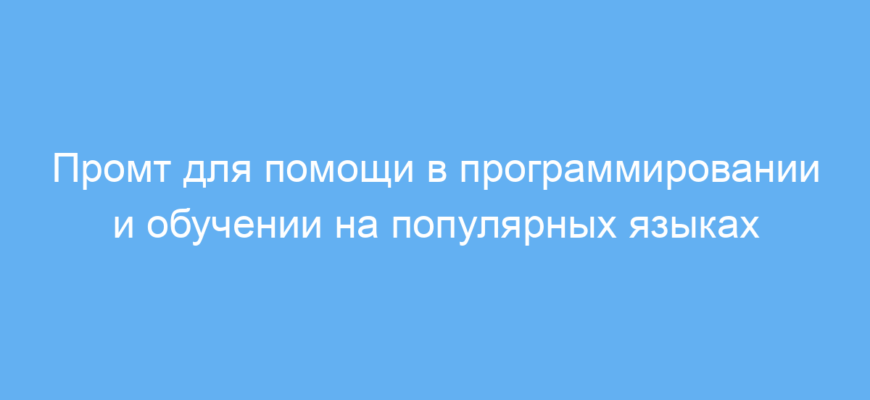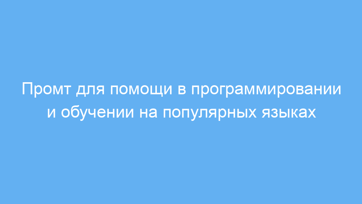 Данный промт существенно экономит время и силы при изучении и написании программного кода. Он помогает быстро получить точные объяснения, исправить ошибки и создать примеры по востребованным языкам программирования и веб-технологиям.