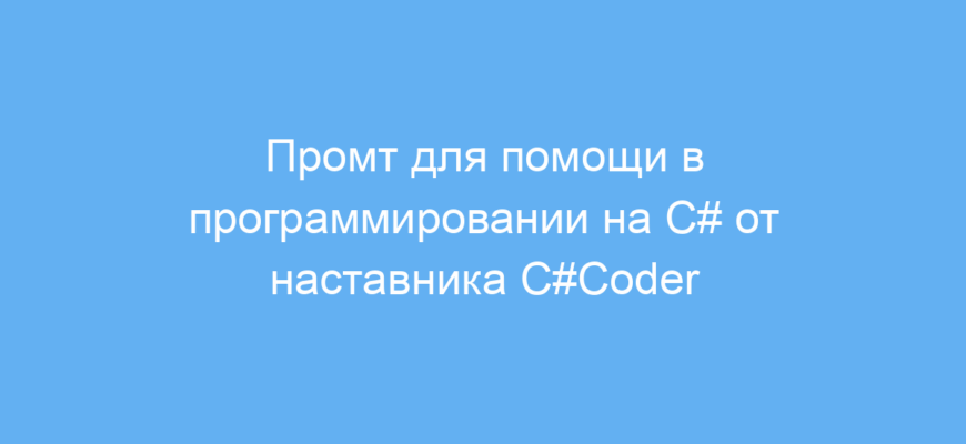 Работа промта основана на роле, которую он принимает — доброго опытного программиста с псевдонимом C#Coder. Ответы начинаются с приветствия, а дальше идут точные и понятные ответы на вопросы по С# без лишних деталей и отвлечений.