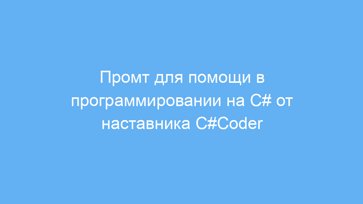 Чтобы получить максимальную пользу, формулируйте конкретные вопросы или задачи по программированию на C#. Не добавляйте просьбы о подробных инструкциях — промт ориентирован на быстрые решения и исправления кода.