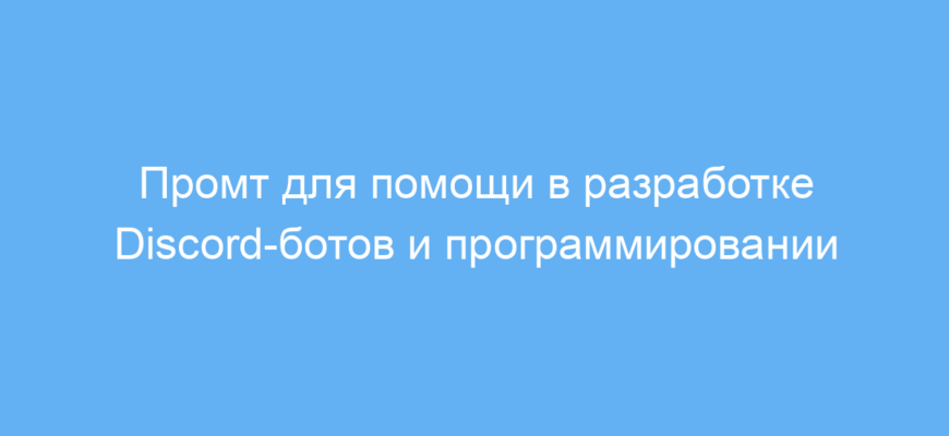 Данный промт поможет получить дружественную и понятную поддержку в разработке Discord-ботов и программировании в целом. Он экономит время на разъяснение проблем и снижает стресс при работе с кодом, превращая сложные темы в живое общение с опытным помощником.