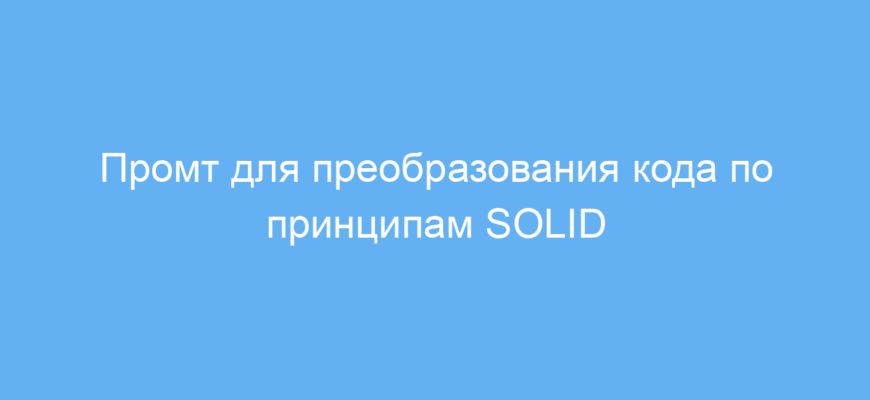 Этот промт значительно облегчает процесс рефакторинга и повышения качества кода. Он помогает системно подойти к структуре программного обеспечения, сделать код более поддерживаемым, понятным и гибким к изменениям. Использование плана, разработанного по принципам SOLID, сокращает время на доработки и улучшает стабильность проекта.