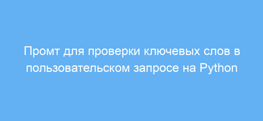 Данный промт предназначен для разработчиков и специалистов, которые хотят автоматически анализировать пользовательские запросы. Он позволяет программно проверять, содержит ли текст определённые ключевые слова, связанные с исходным промтом, и на основе этого выдавать соответствующий ответ.