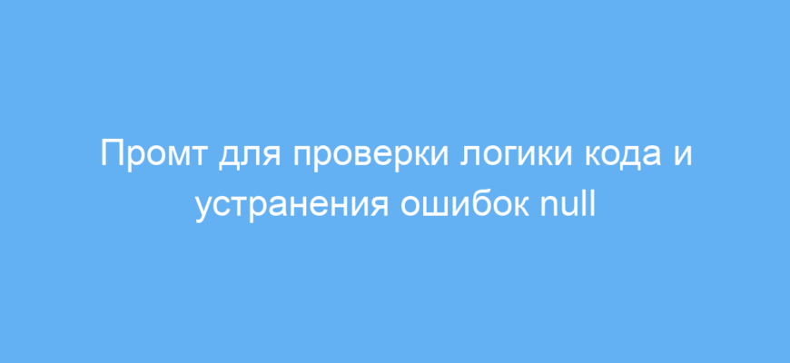 Этот пример показывает, как промт помогает найти и исправить ошибки, связанные с использованием переменной, которая может быть null.