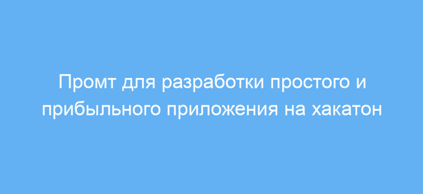 Этот промт экономит время и упрощает процесс создания приложения в условиях хакатона или быстрого старта. Он помогает сориентироваться в идеях, технических требованиях и стратегиях продвижения. Благодаря ему команда получает четкую и пошаговую инструкцию, что значительно повышает шансы выпустить простой, но востребованный и прибыльный продукт.