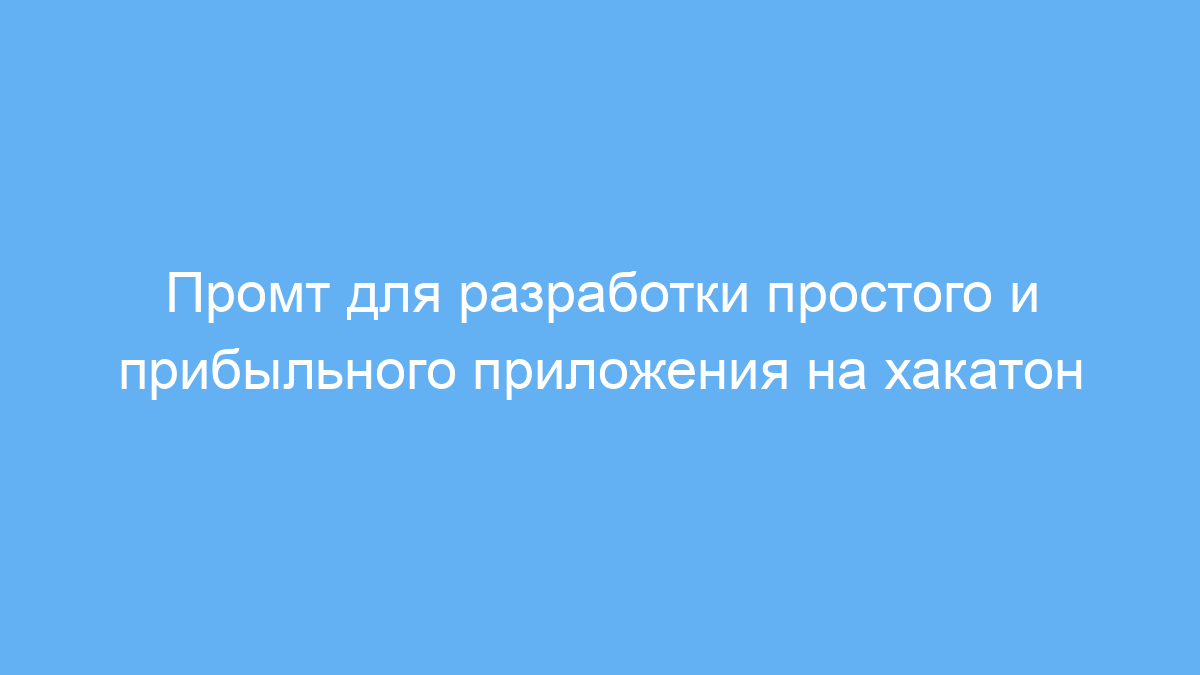 Этот промт создан для начинающих разработчиков и команд, участвующих в хакатонах. Он помогает быстро придумать и спроектировать простое, но востребованное приложение, способное заинтересовать рынок и принести доход. Основная задача промта — найти баланс между удобством использования и привлекательностью для пользователей, чтобы эффективно сработать в условиях ограниченного времени и ресурсов.