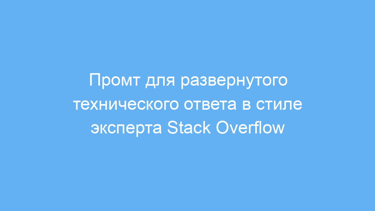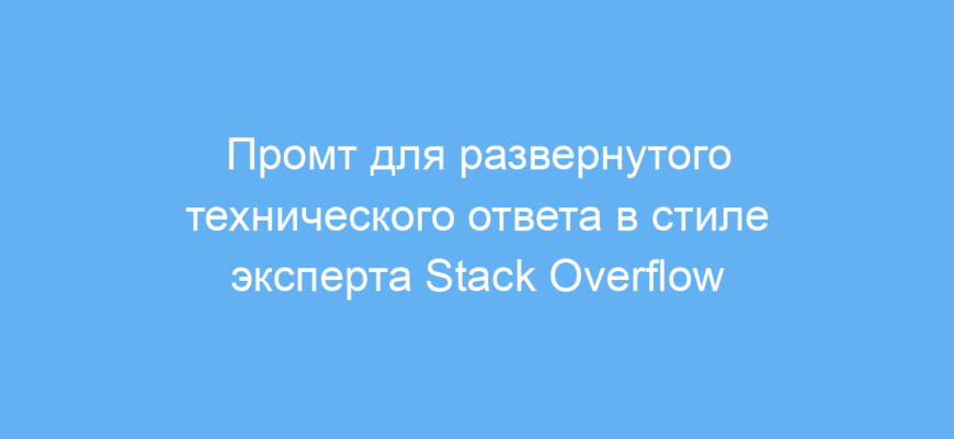 Этот промт создан для пользователей нейросетей, которым требуется подробный и технически грамотный ответ на сложные вопросы программирования и IT. Он идеально подходит для разработчиков, студентов и технических специалистов, которые ищут чёткие решения с примерами кода, таблицами и детальными разъяснениями. Основная задача промта — помочь нейросети генерировать развернутые, понятные и структурированные ответы, подобные тем, что можно увидеть на Stack Overflow, где технические детали важны для полного понимания проблемы и её решения.