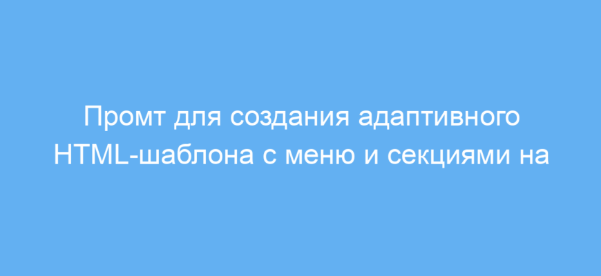 Этот промт предназначен для веб-дизайнеров, разработчиков и маркетологов, которые хотят быстро получить готовый HTML-шаблон с адаптивным дизайном. Он особенно полезен тем, кто разрабатывает сайты без использования JavaScript и нуждается в чистом решении на HTML и CSS. Благодаря этому промту можно за считанные минуты получить структуру сайта с отзывчивым меню и централизованными секциями, что экономит время и силы.