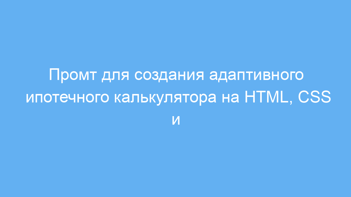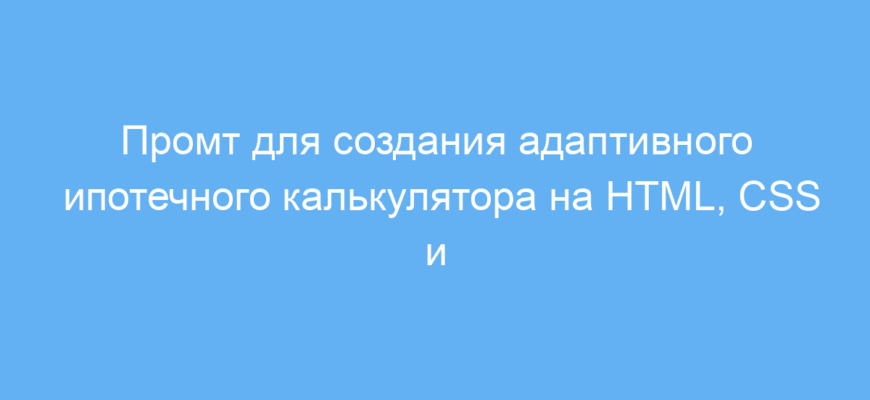 Использование данного промта значительно сокращает время разработки удобного, красивого и многофункционального ипотечного калькулятора. Он задаёт чёткие требования к функционалу и стилю и помогает получить готовый для внедрения инструмент без необходимости писать код вручную с нуля.