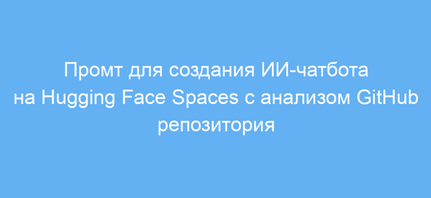 В основе промта лежит последовательность действий: загрузка репозитория, анализ его содержимого, создание эмбеддингов — специализированных векторных представлений кода, — и использование моделей для обработки запросов пользователя. Благодаря ресурсам Hugging Face Spaces и библиотекам как PyGitHub, чатбот становится мощным инструментом для интерактивной работы с кодом.