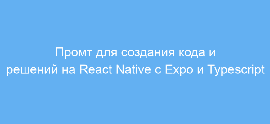 Данный промт позволяет экономить время и получать готовые, оптимизированные решения под React Native и Expo с использованием современного Typescript и ключевых технологий для мобильной разработки. Он упрощает изучение и внедрение сложных функций, таких как навигация, состояние, анимации и интеграция с API, предлагая архитектурные рекомендации и при необходимости нативные альтернативы.