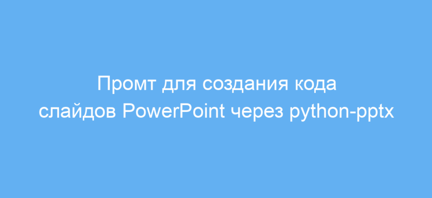 Этот промт значительно упрощает и ускоряет создание презентаций в PowerPoint с помощью кода на Python. Он устраняет необходимость самому писать сложные скрипты и следить за форматированием текста, одновременно предоставляя гибкость по количеству и содержанию слайдов.