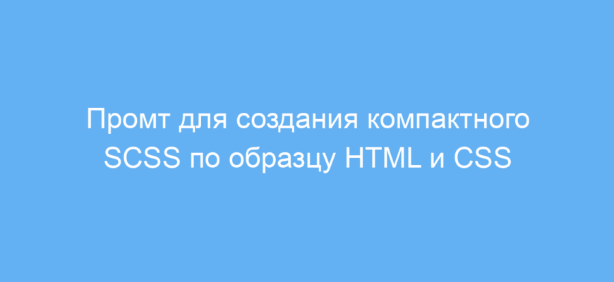 Этот промт сэкономит время при переносе или повторении дизайна между разными HTML элементами. Он помогает быстро получить компактный, читабельный SCSS код, идеально повторяющий внешний вид исходника. Это особенно удобно при работе над крупными проектами и поддержании единого стиля.