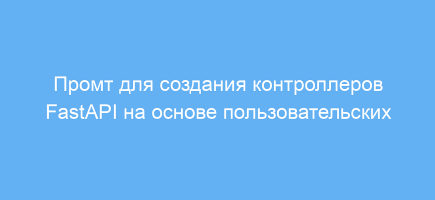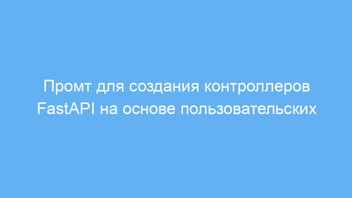 Используйте этот промт, когда нужно получить шаблон контроллера для FastAPI без лишних объяснений. Чёткое формулирование задачи позволит получить максимально релевантный и лаконичный код. Промт подойдёт как для новичков, так и для опытных разработчиков, которые хотят ускорить написание стандартных контроллеров.