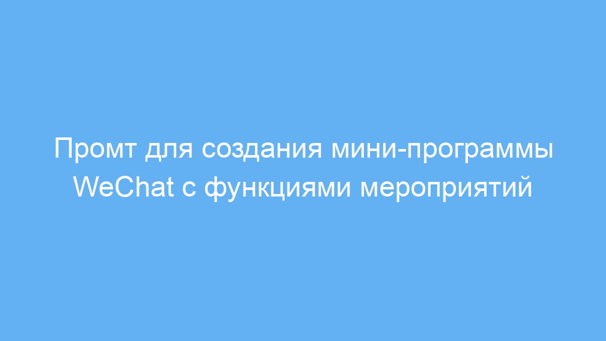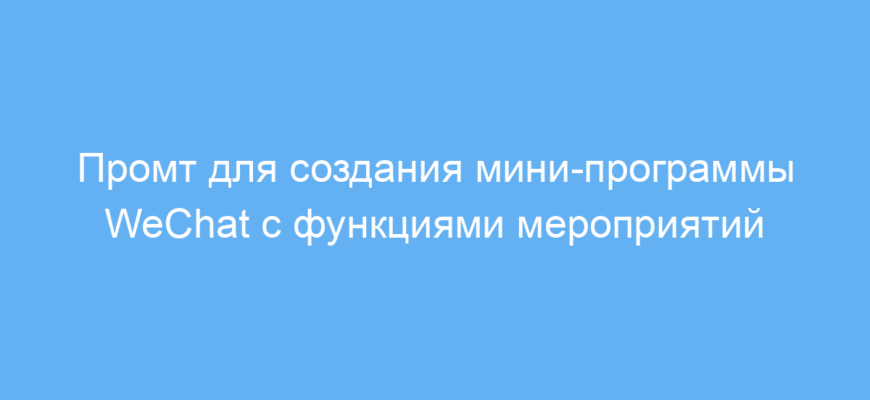 Этот промт предназначен для разработчиков, продакт-менеджеров и специалистов по цифровым решениям, которые хотят быстро получить рабочий код и функциональную структуру мини-программы WeChat. Особенно он полезен тем, кто разрабатывает приложения под экосистему WeChat и нуждается в удобных инструментах для управления мероприятиями.