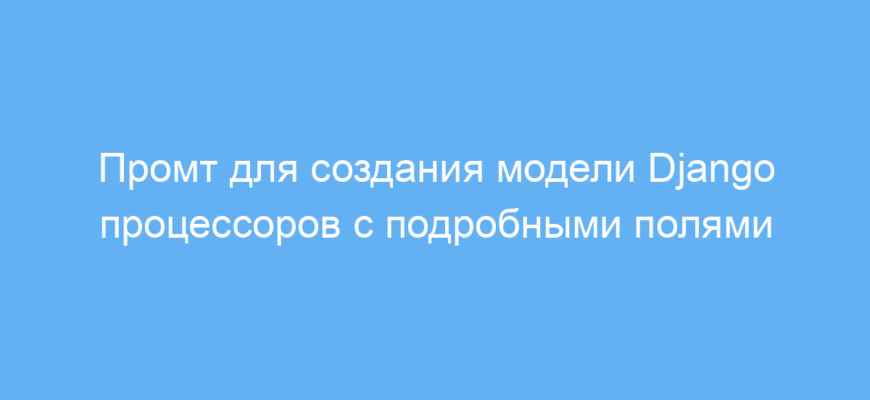Ниже представлен пример структуры модели Django для процессоров, с описанием полей и кратким пояснением по функциям и методам: