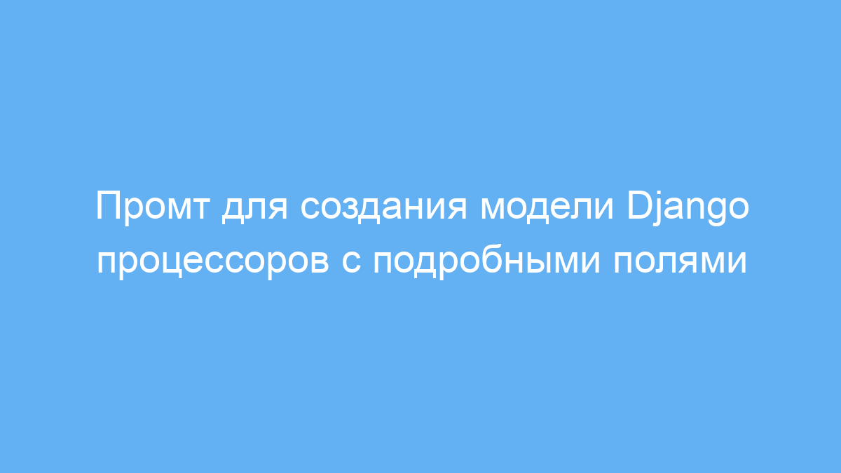Этот промт предназначен для разработчиков и студентов, которые работают с фреймворком Django и изучают создание моделей данных. Он поможет быстро получить структуру модели для процессоров с набором обязательных и дополнительных полей, таких как номер модели, бренд, чипсет, количество ядер и другие технические характеристики. Такое описание модели упрощает хранение и обработку информации о процессорах в базе данных.