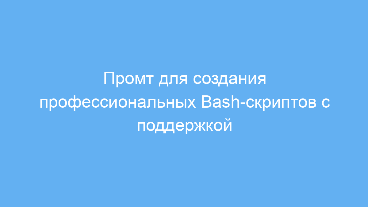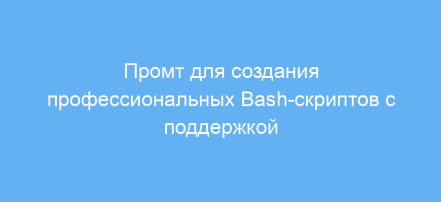 Промт предназначен для использования с нейросетями, которые генерируют готовые к выполнению Bash-скрипты, учитывая лучшие практики и передовые технологии. Пользователь формулирует запрос — какую задачу должен решать скрипт — и получает от нейросети продуманный и надёжный код.