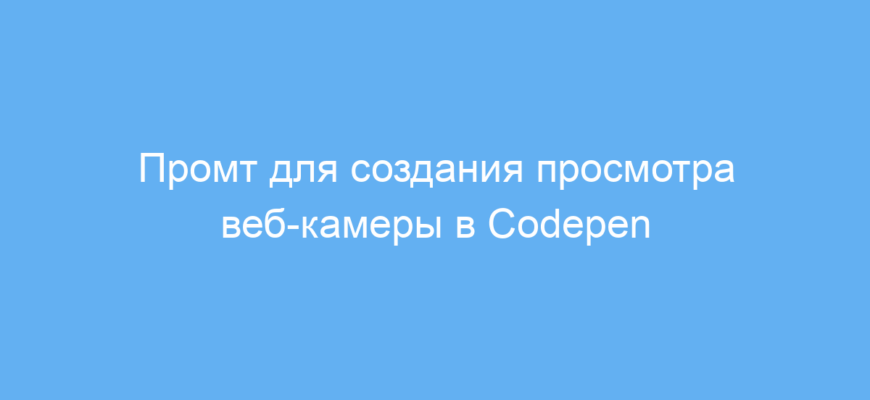 Использование этого промта позволяет быстро и без лишних вопросов получить структурированный и чистый код для просмотра веб-камеры в Codepen. Он экономит время, снижает ошибки и упрощает коммуникацию между заказчиком и исполнителем.