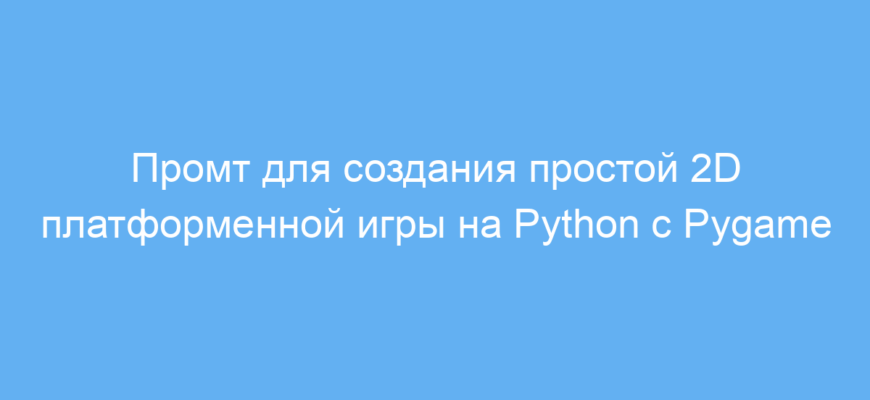 Промт формулирует чёткие требования: игровой персонаж с движением и прыжками, взаимодействие с платформами, соблюдение стандартов PEP 8, базовая обработка ошибок и комментарии для наглядности. Это позволяет нейросети сгенерировать сбалансированный, понятный и гибкий код, на котором можно строить дальнейшие улучшения и добавлять уникальные игровые механики.