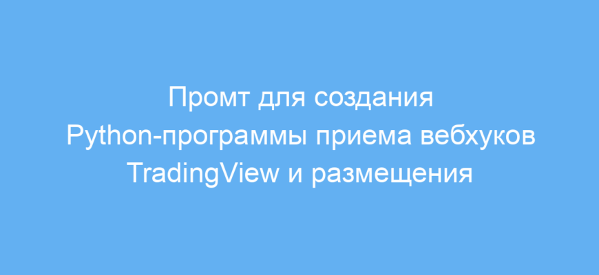 Этот промт предназначен для разработчиков и трейдеров, которые хотят автоматизировать торговлю, используя сигналы из TradingView. Он помогает создавать программу на Python, которая принимает уведомления (вебхуки) от TradingView и автоматически размещает торговые ордера на платформе Interactive Brokers.