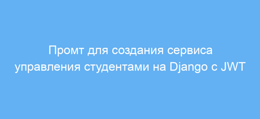 Этот промт предназначен для разработчиков, которые создают веб-приложения с разделением по ролям пользователей и нуждаются в генерации backend-сервисов с ботом нейросети. Особенно он полезен тем, кто работает с Django и хочет быстро получить готовый код для управления студентами в LMS (Learning Management System), учитывающий аутентификацию через JWT и права доступа.