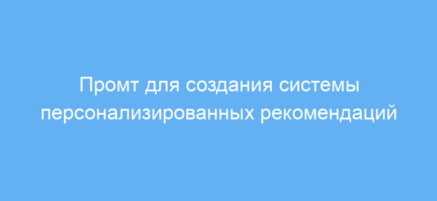 Этот промт значительно облегчает создание эффективной системы персонализированных рекомендаций, которая повышает удовлетворённость пользователей и помогает бизнесу удерживать клиентов. Он структурирует процесс разработки, обеспечивая учёт ключевых факторов для точного анализа предпочтений и улучшения модели со временем.