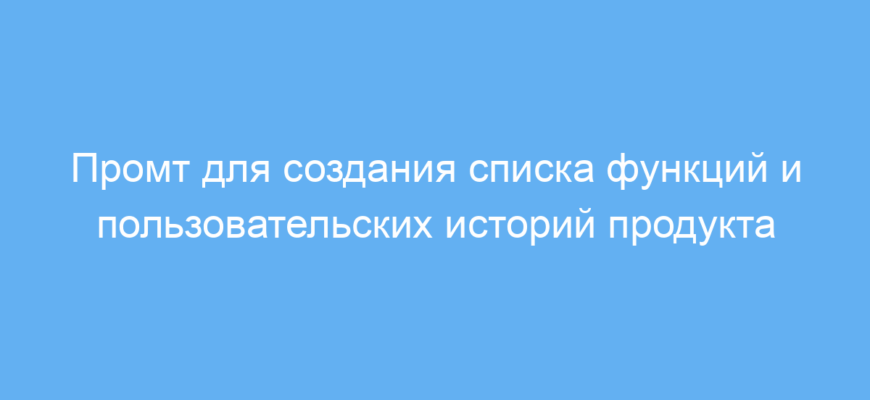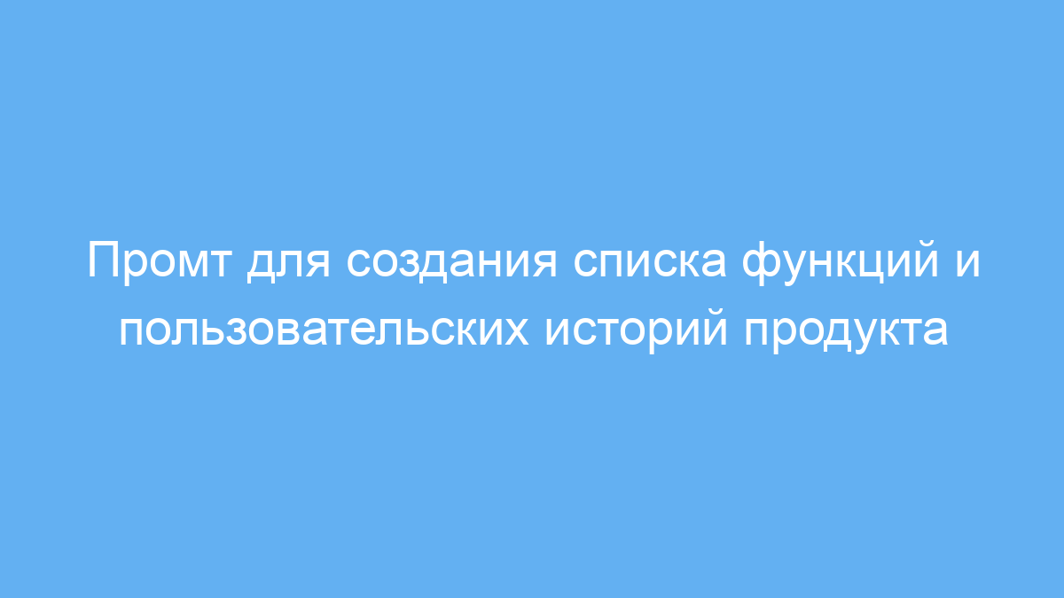 Этот промт создан для менеджеров продуктов, бизнес-аналитиков и команд разработки. Он помогает быстро сформировать список функций и возможностей на основании спецификации продукта. Далее по этим функциям генерируются пользовательские истории и критерии приемки, что упрощает планирование и коммуникацию внутри команды.