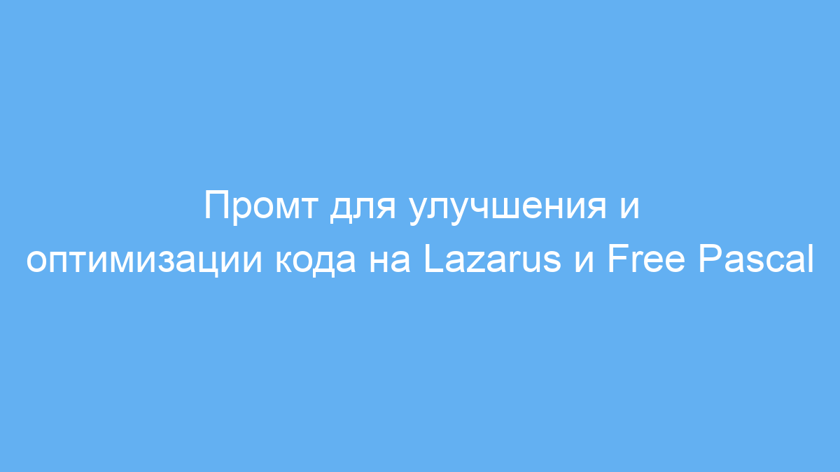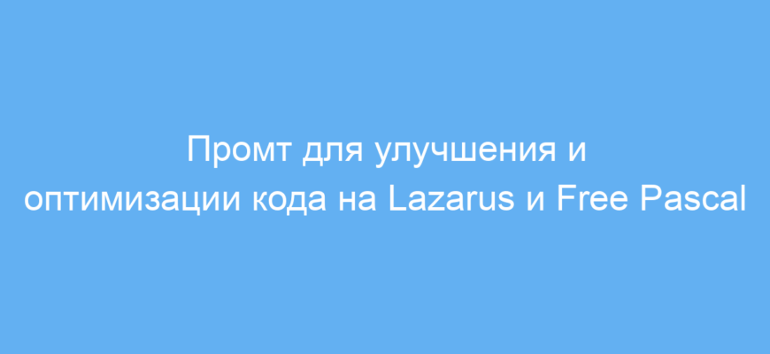 Использование промта позволяет быстро превратить сложный и неграмотно написанный код на Free Pascal/Lazarus в аккуратную, оптимизированную и понятную программу. Это экономит время на рефакторинг, помогает избежать ошибок и ускоряет обучение программированию с учётом лучших практик.