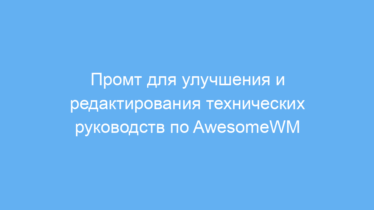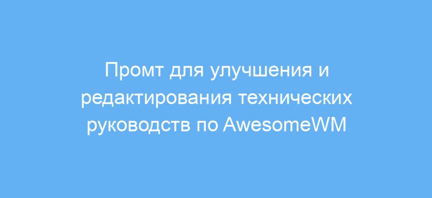 Этот промт предназначен для специалистов, которые работают с технической документацией, особенно с модульными конфигурациями оконного менеджера AwesomeWM. Он поможет авторам и редакторам улучшить черновые главы руководств, сделать их более понятными и привлекательными для читателей с разным уровнем подготовки.