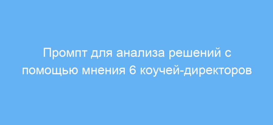 Промпт решает проблему субъективного восприятия своих решений. Он помогает выявить слабые места, получить советы и критику от шести уникальных экспертов с разным мировоззрением. Таким образом, пользователь получает разностороннюю обратную связь, основанную на разных ценностях и опыте.