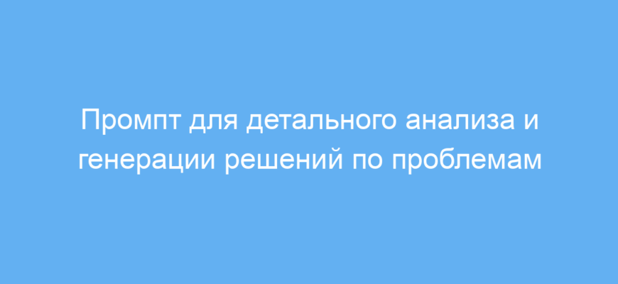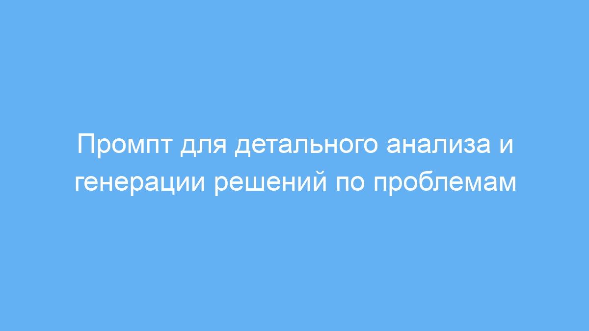 Этот промпт помогает структурировать и углубить понимание проблемы, получить широкий спектр идей и решений, адаптированных под конкретную ситуацию пользователя. Он экономит время на генерацию и проработку идей, вовлекая пользователя в интерактивный процесс, что повышает качество результатов.
