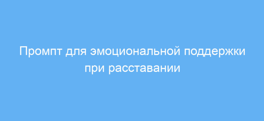 Этот промпт создан для людей, которым требуется эмоциональная поддержка в период расставания. Он полезен психологам, консультантам, а также разработчикам, создающим чат-боты и помощников, которые помогают пользователям справляться с трудными чувствами после разрыва отношений.
