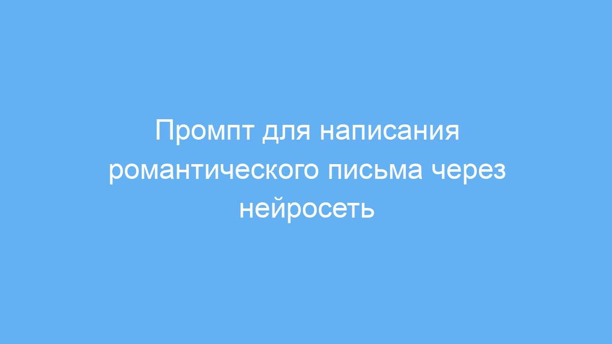 Этот промпт создан для тех, кто хочет выразить свои чувства в романтическом письме, но испытывает сложности с подбором слов. Особенно он подойдет людям, которые не уверены, как начать общение с возлюбленным или понравившимся человеком.