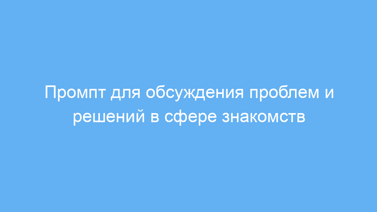Этот промпт помогает структурировано описать проблему в сфере знакомств и получить полезные советы для её решения. Он экономит время и силы, направляя внимание на важные аспекты отношений и предлагая действенные рекомендации. Пользователь получает ясные подсказки, как лучше реагировать на вызовы личной жизни и строить гармоничные связи.