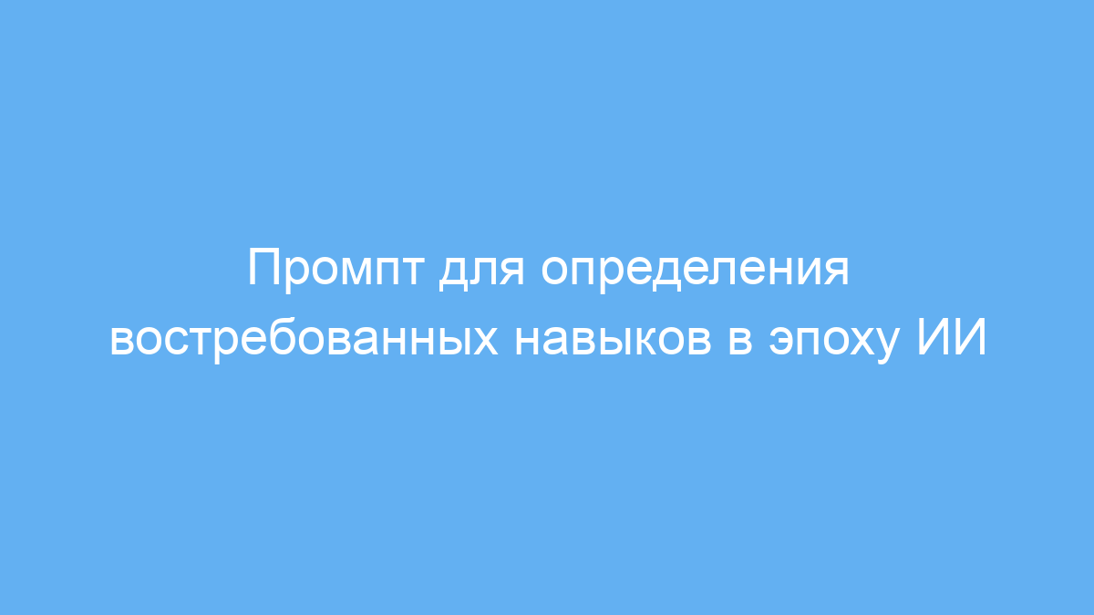 Этот промпт предназначен для людей, которые хотят понять, какие навыки развивать, чтобы оставаться конкурентоспособными на рынке труда в условиях быстрого внедрения искусственного интеллекта. Он особенно полезен тем, кто готовится к изменениям в профессиях из-за ИИ и хочет получить персонализированные рекомендации для профессионального роста.
