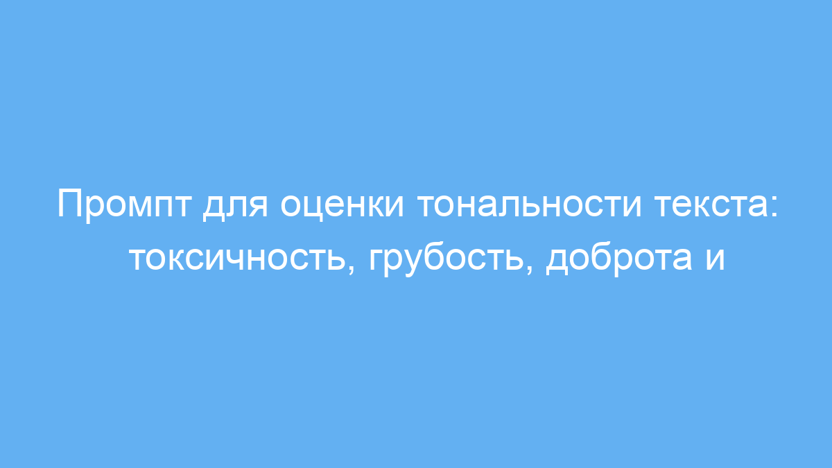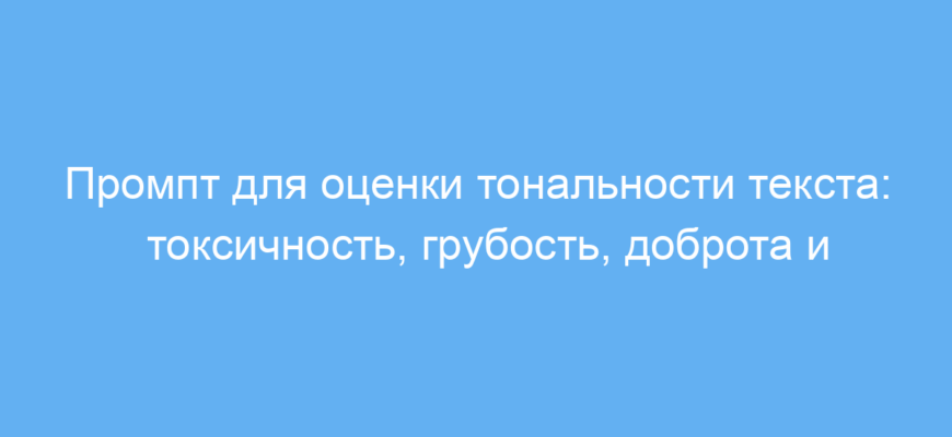 Этот промпт предназначен для специалистов, которые хотят быстро и точно анализировать тональность текстов. Он помогает выявлять уровень токсичности, грубости, доброты и уместности высказываний в предложениях. Это особенно полезно для модераторов, контент-менеджеров, специалистов по работе с клиентами, а также для автоматической проверки сообщений в социальных сетях или форумах.