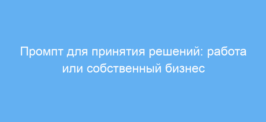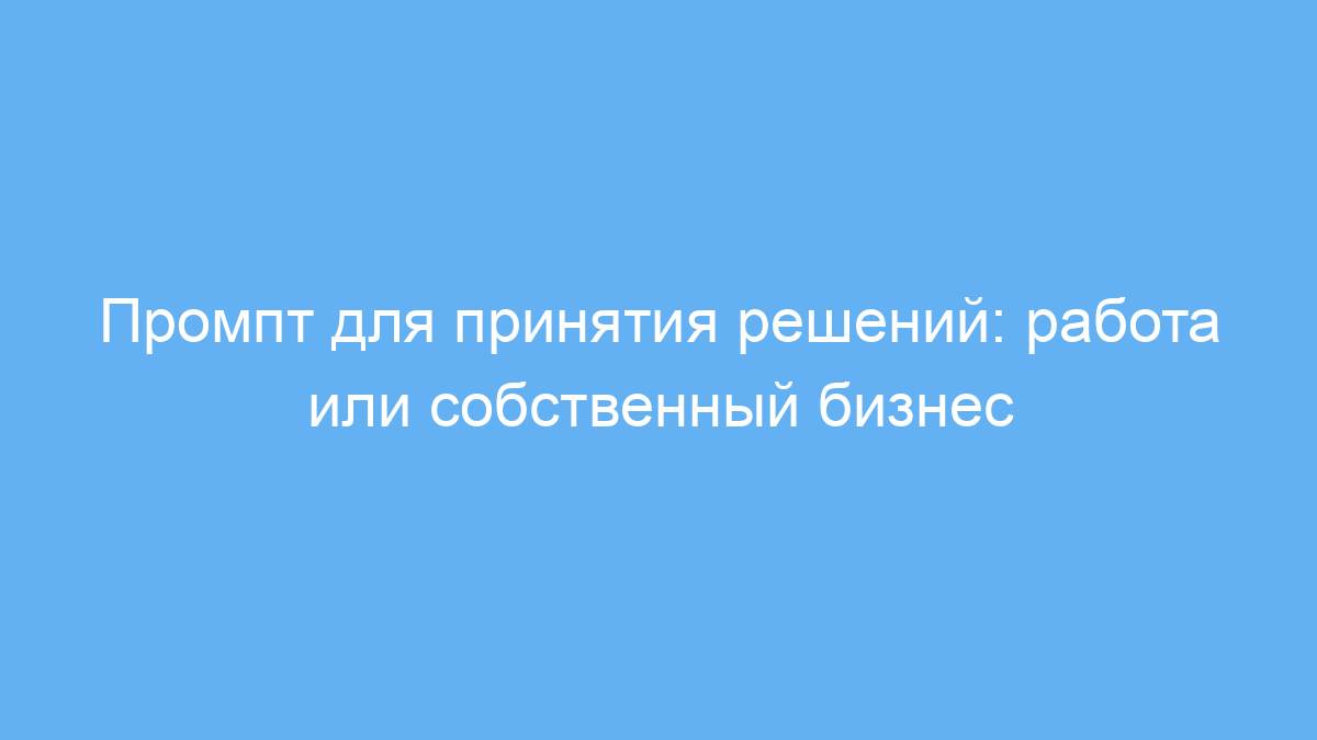 Этот промпт предназначен для тех, кто стоит перед важным выбором в жизни — стоит ли устроиться на работу или начать собственное дело. Он полезен тем, кто хочет получить взвешенный совет с разных точек зрения и не может определиться самостоятельно. Такой инструмент помогает оценить ситуацию комплексно, учитывая разные подходы к принятию решений.