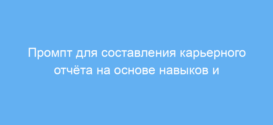 Использование этого промпта позволяет быстро и удобно получить ясное представление о подходящих карьерных путях на основе ваших уникальных навыков, интересов и ценностей. Он заменяет длительные поиски и неопределённость, помогая сосредоточиться на наиболее перспективных направлениях и компаниях.