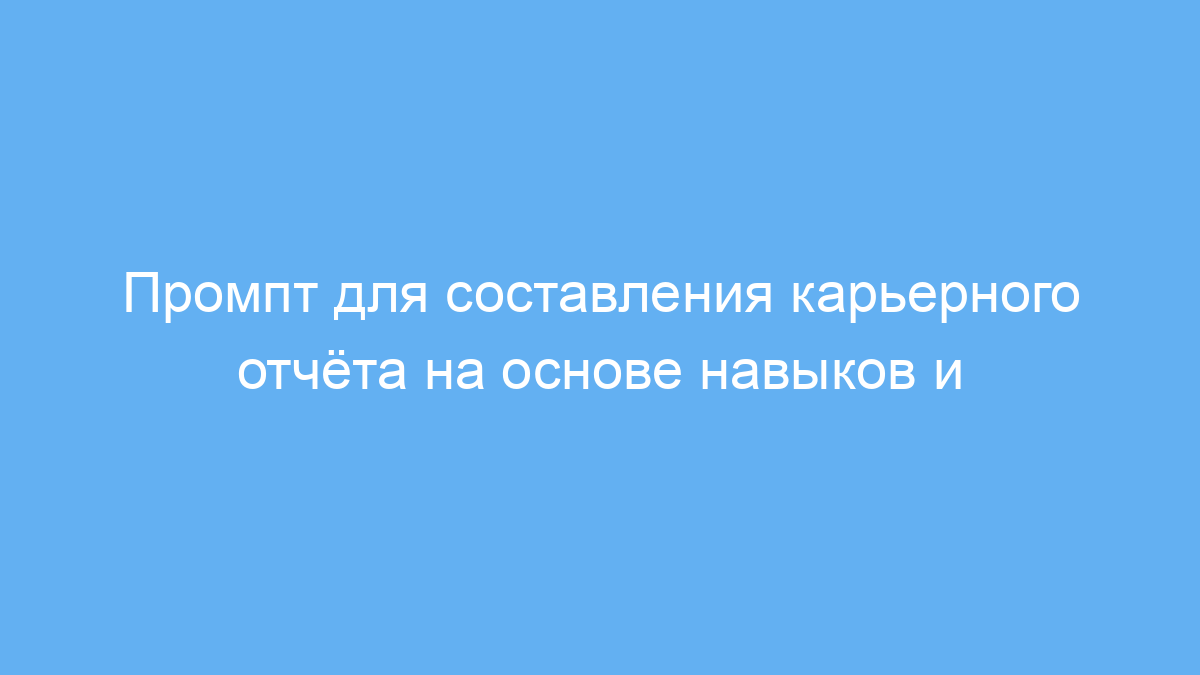Этот промпт создан для людей, которые хотят получить персонализированные рекомендации по развитию карьеры. Если вы не уверены, в каком направлении двигаться, хотите понять, какие отрасли и роли подходят вам лучше всего, — этот инструмент поможет быстро получить структурированный обзор карьерных возможностей.