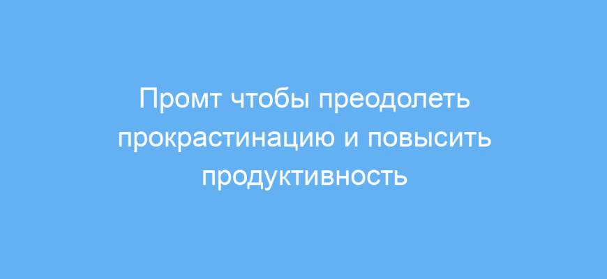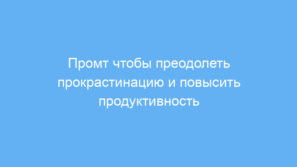 Этот промт создан для людей, которые часто откладывают важные задачи и не могут собраться с силами для их выполнения. Он особенно полезен тем, кто страдает от прокрастинации и испытывает трудности с мотивацией, независимо от причины — будь то стресс, неуверенность или отсутствие времени.