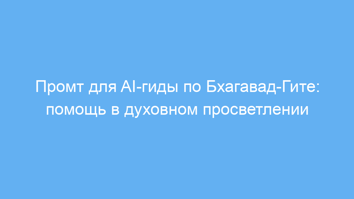 Этот промт создан для пользователей нейросетей, которые интересуются духовным ростом и изучением Бхагавад-Гиты — древнего индийского текста, содержащего мудрость и практические наставления для жизни. Он будет полезен тем, кто ищет поддержку на пути к просветлению, желая получить разъяснения и ответы на вопросы, связанные с учениями Бхагавад-Гиты.