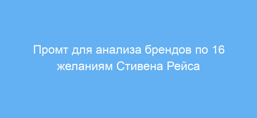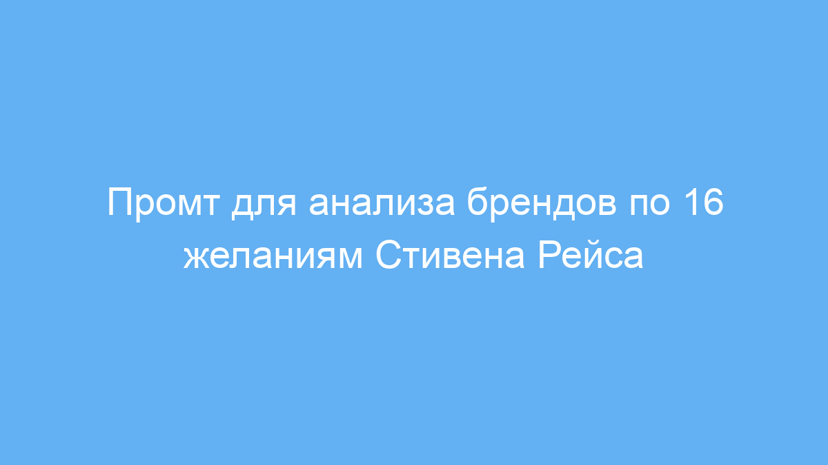 Этот промт предназначен для маркетологов, бренд-аналитиков, психологов и исследователей, которые хотят глубже понять мотивацию потребителей. Он помогает выяснить, как определённые категории брендов или продуктов соответствуют 16 основным человеческим желаниям по теории Стивена Рейса.
